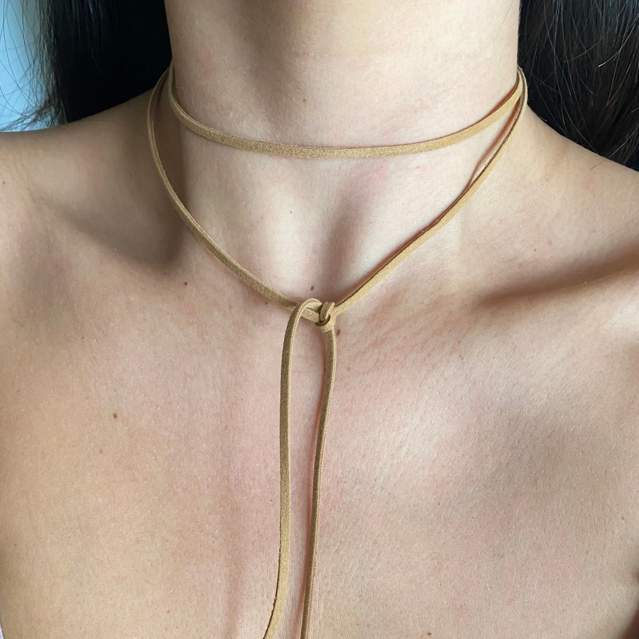 Colar em couro com duas voltas e ponteira.