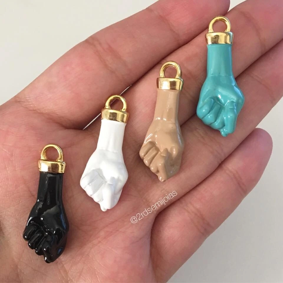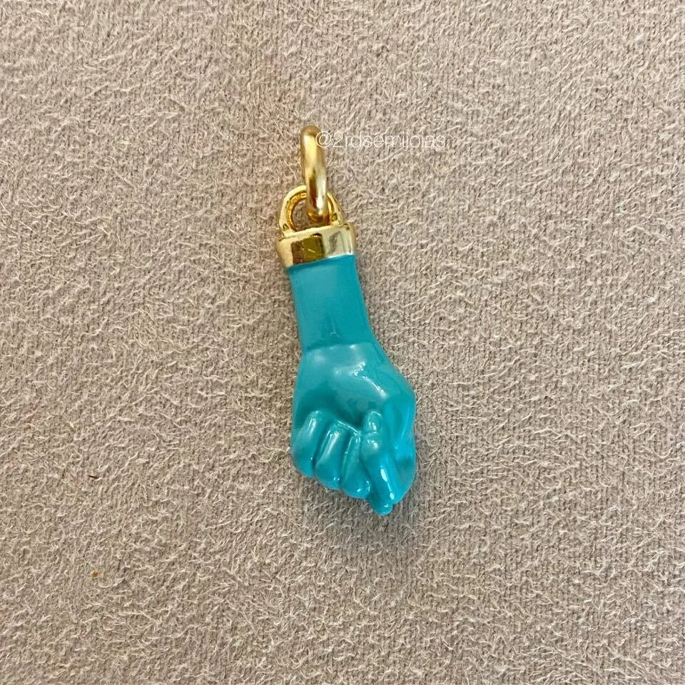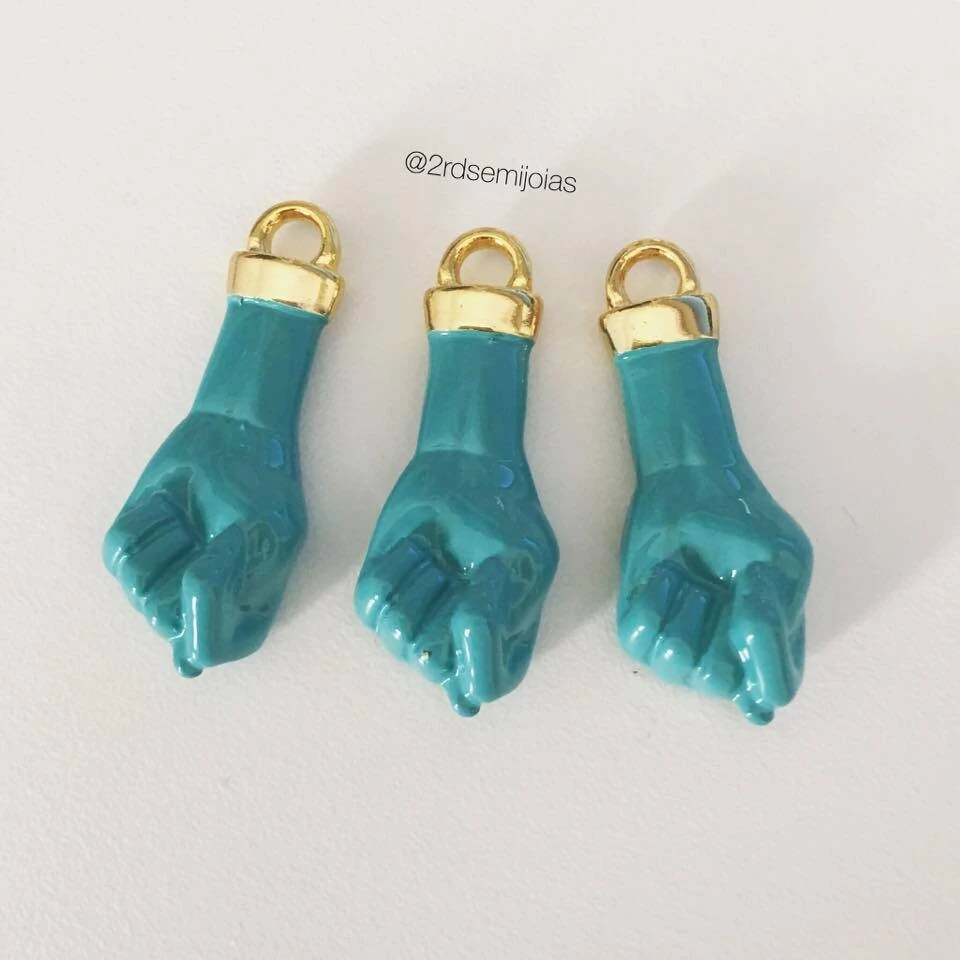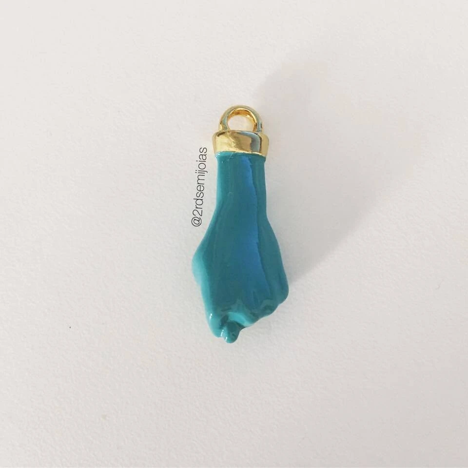 Pingente de figa em resina azul turquesa com metal antialérgico banhado a ouro.