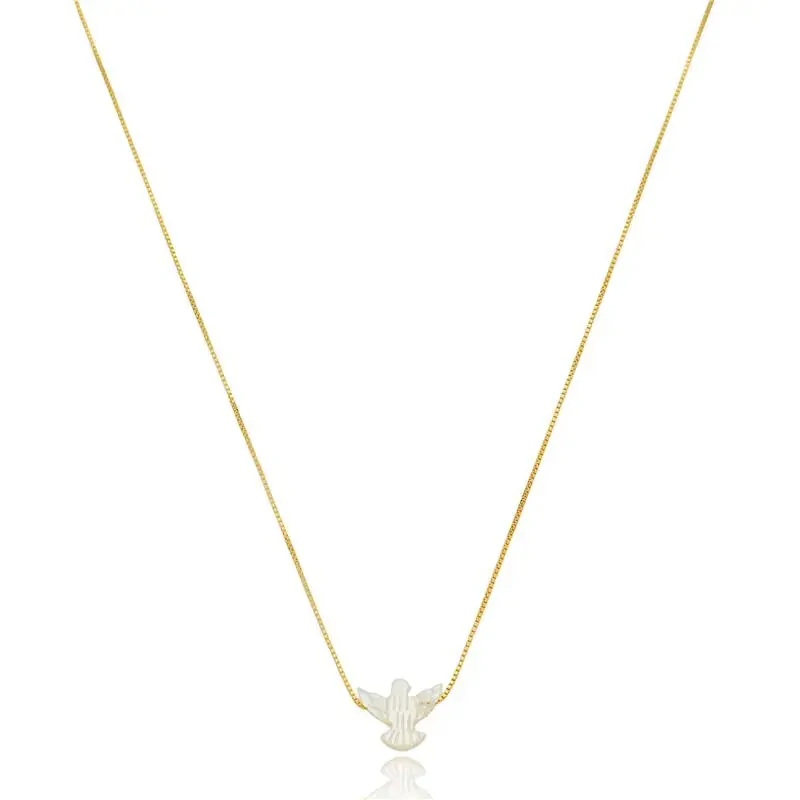 Colar em metal hipoalergênico com banho de ouro 18k e Divino Espírito Santo em Madrepérola.
