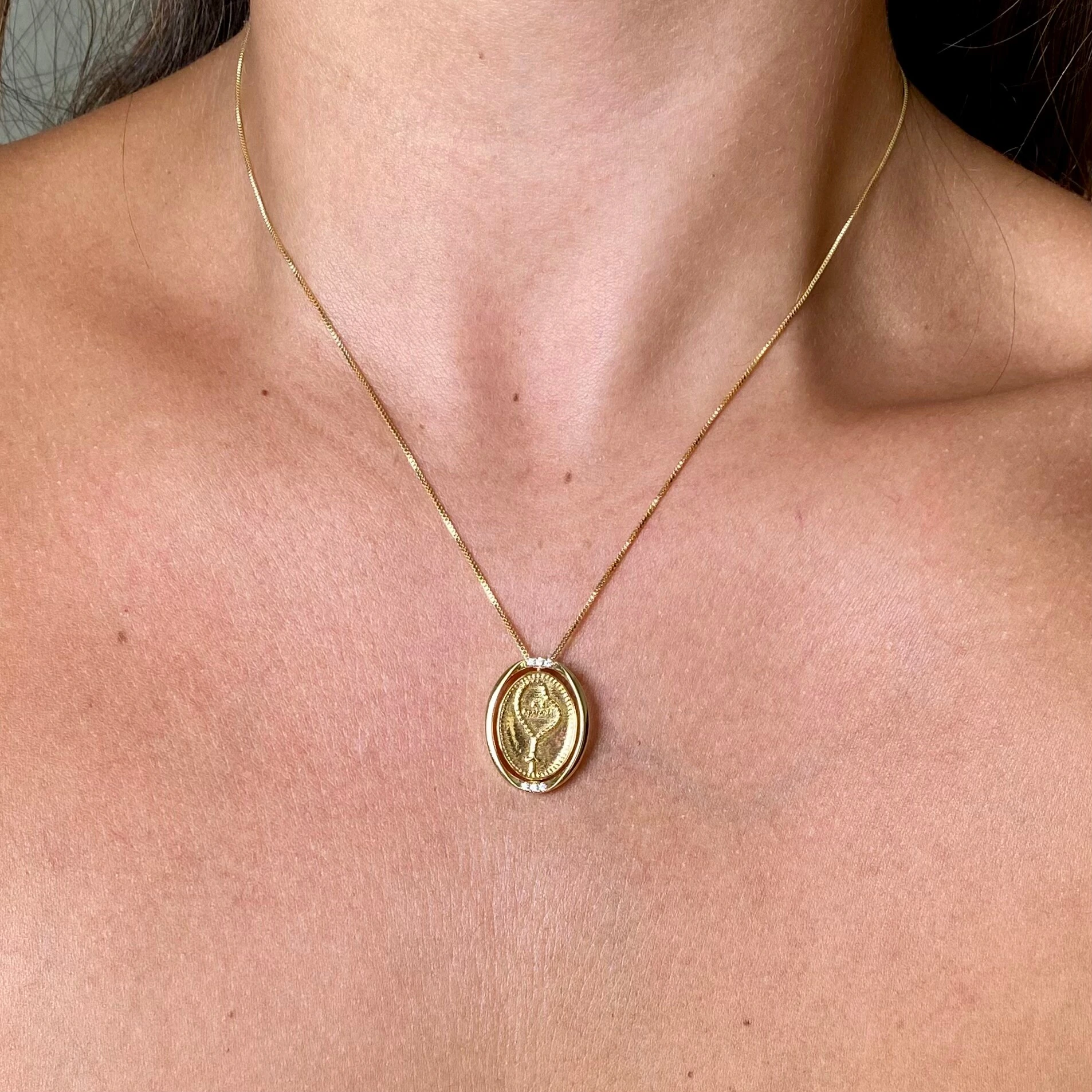 Pingente Medalha: 2,2cm x 1,7cm.