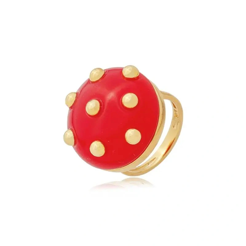 Anel em metal hipoalergênico com banho de ouro 18k e botão em acrílico.