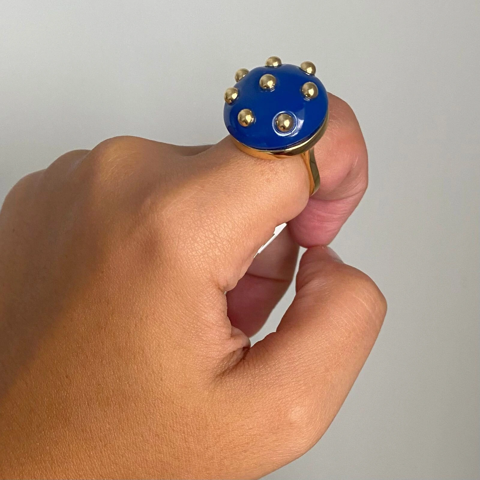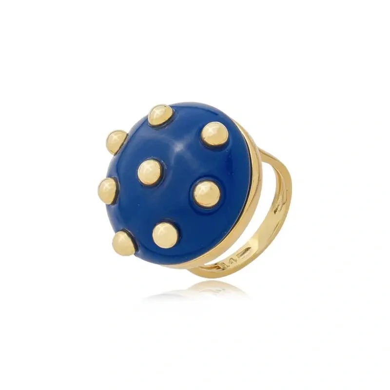 Anel em metal hipoalergênico com banho de ouro 18k e botão em acrílico.