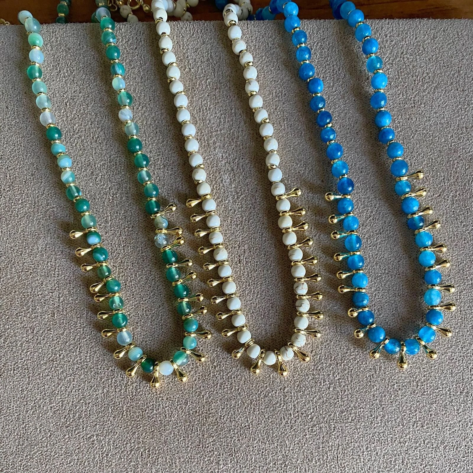 Choker em metal hipoalergênico com banho de ouro 18k e pedra natural Ágata.